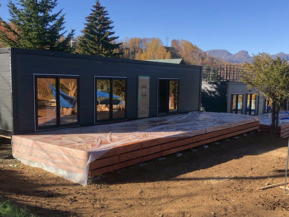 グランピング内デッキ造作
